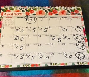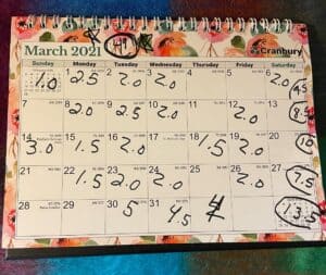 n March I committed to 2 hours a day, 4 times a week, and I began “fast drafting” as taught by novelist Jessica Brody.Ā You can see on my March calendar that I did more than what I committed myself to, especially the last week when I was in Maine, just me, with lots of time and space to write!