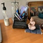 I say desk, singular, but in fact, I have two writing desks. This is just a piece of one of them. I know, I’m very lucky. No, make that blessed!
