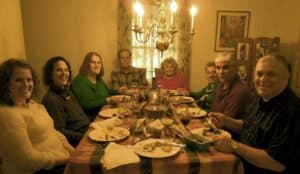 Many of us in the United States are preparing for Thanksgiving this week. Because of the pandemic, our usual table of ten has been whittled down to four- my husband, his mother and brother, and me. I’m feeling particularly sad right now because I’m missing my side of the family who always comes to celebrate the Day of Thanks with us. Here we are from a past Turkey Day dinner.