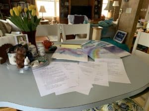 I started making lists of what needed to be done. There was research to be done on dragonflies and their life spans and so on. There was the very, very first step which was to re-read what I’d already written! There were dialogues to be written between characters that didn’t ordinarily interact. There were “interviews” to be imagined and written with each character so I could see where they were headed and what they wanted and why they were stuck. I created a two-page check list and hung it on the wall in my writing room, and just did 1-2 things every day (well, almost every day) until the list were done.