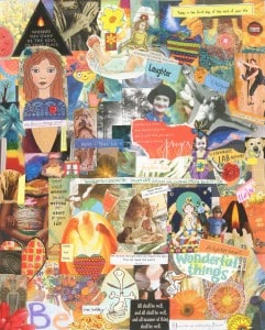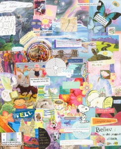 These are 16 x 20 pieces of mixed media collage art that I created in the summer of 2012. Each one is made up of snippets, images, and quotations from the over 200 cards I received during my recoveries from cancer (secondary angiosarcoma), including two surgeries and multiple chemotherapy treatments July 2011-July 2012.