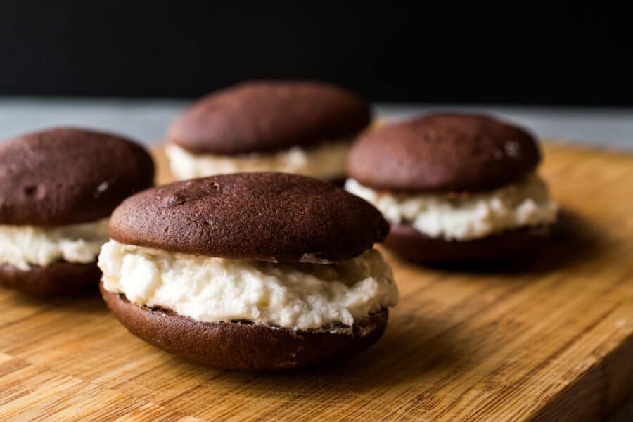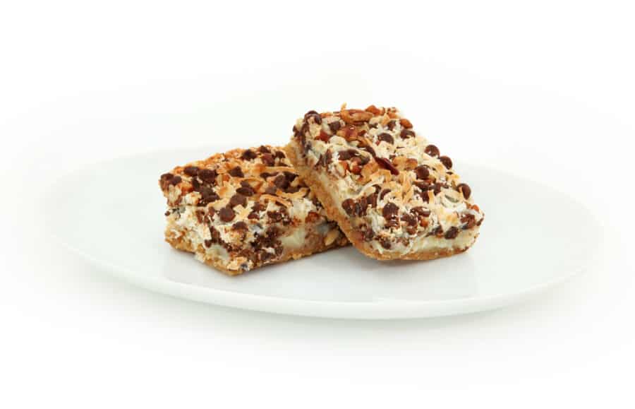 - Cut up the block of cream cheese, while frozen, into small chunks